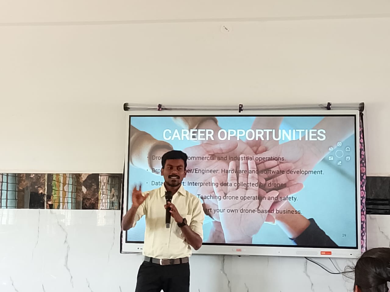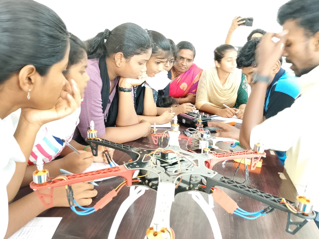 Students learned about the basics of drone mechanics, flight control, safety measures, and also got the chance to fly drones practically under expert guidance.